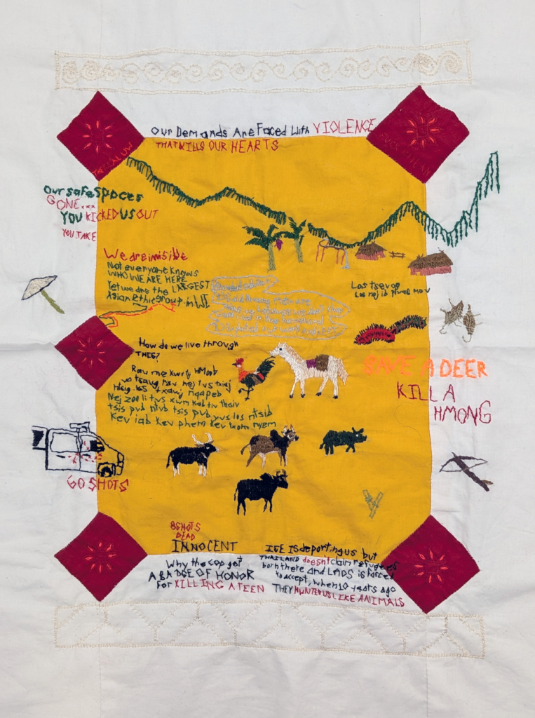Embroidery Floss and HMoob Hemp thread on Cotton